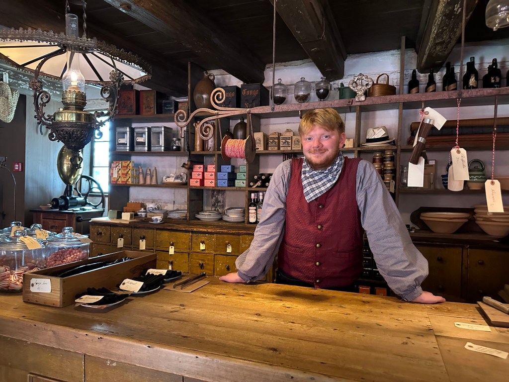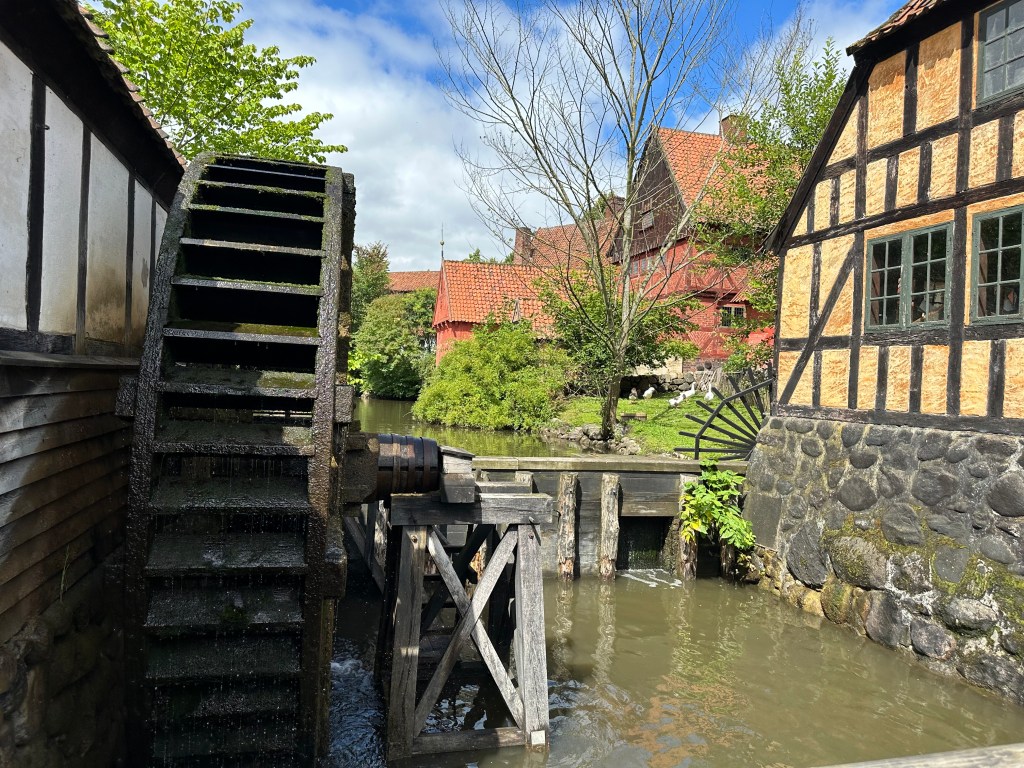 Ett måste om man är i Aarhus i Danmark på Jylland. ”Den gamle by” Här jar dom byggt upp ett område med 4:a olika århundrade, dom har plockat hus från olika ställen i Danmark för att kunna göra denna utställning. Dessutom hade de tidsenliga karaktärer som smälte in i miljön.