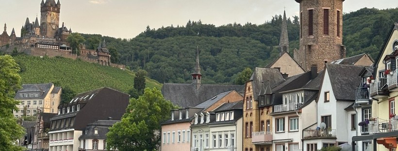 Town Hall Moselpromenad Mosel Flodkryssning Cochem en liten pärla vid floden Mosel. Moseldalen är fylld av små byar som erbjuder det charmigaste man kan tänka sig. Vi stannade i Cochem för en övernattning på Moselromantikhotel am Panoramaborgen. Mosel är ca 55 mil lång rinner hela vägen från östra Frankrike till Koblenz i Tyskland, de sista … Fortsätt läsa Cochem en pärla vid Moseldalen